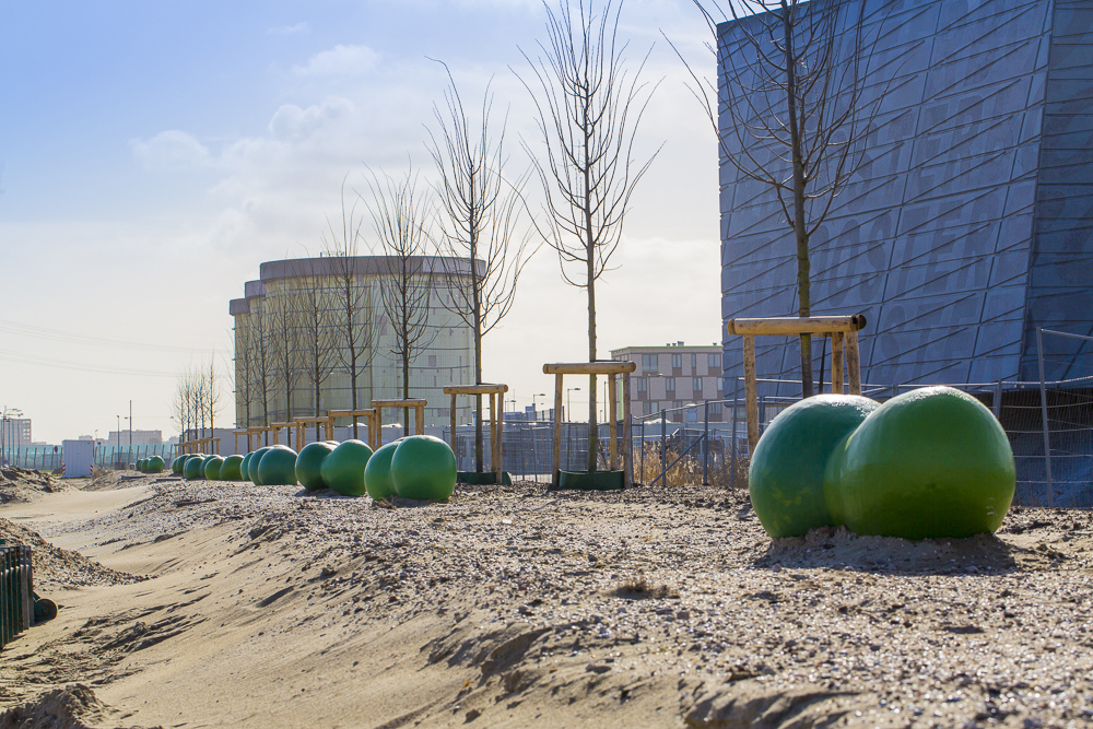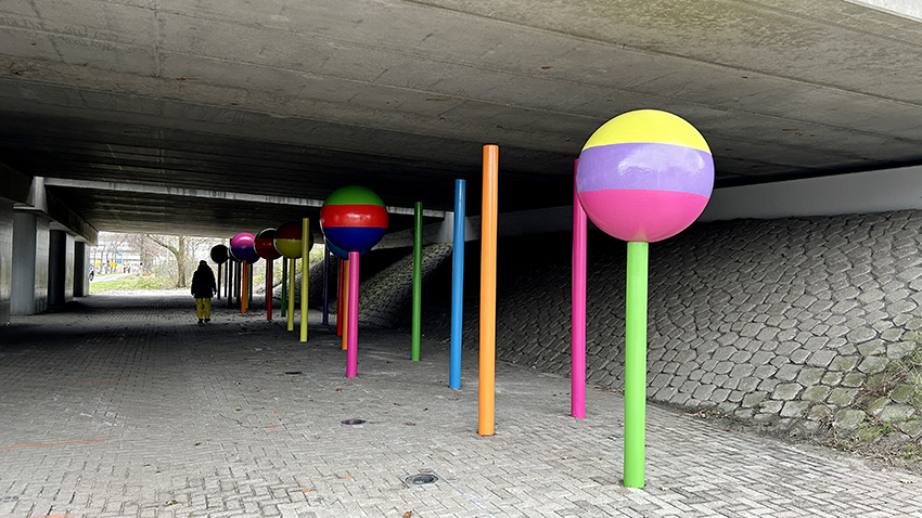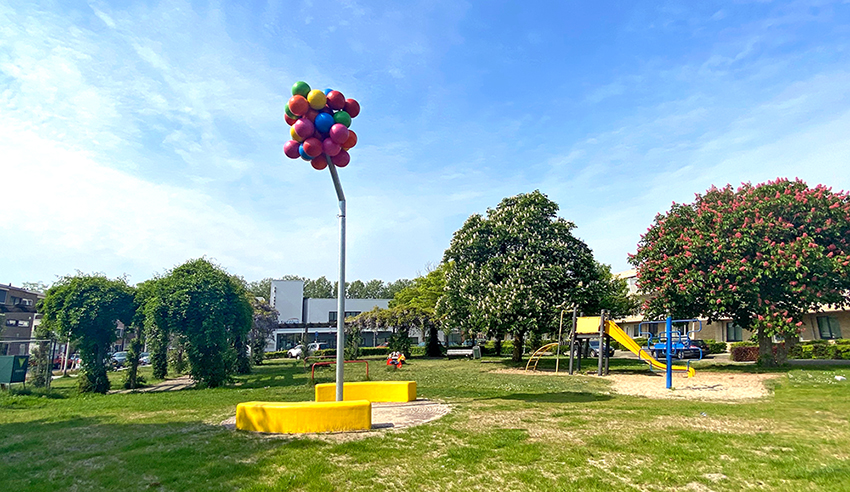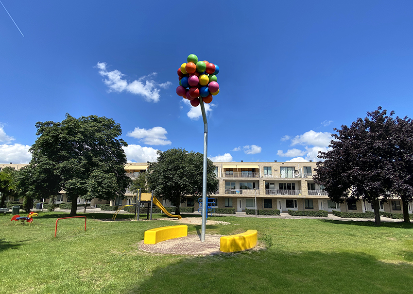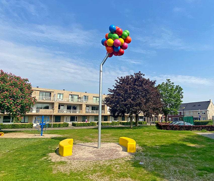 Bewegend kunstwerk dat aantrekt en intimiteit geeft aan het speelveldje