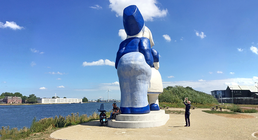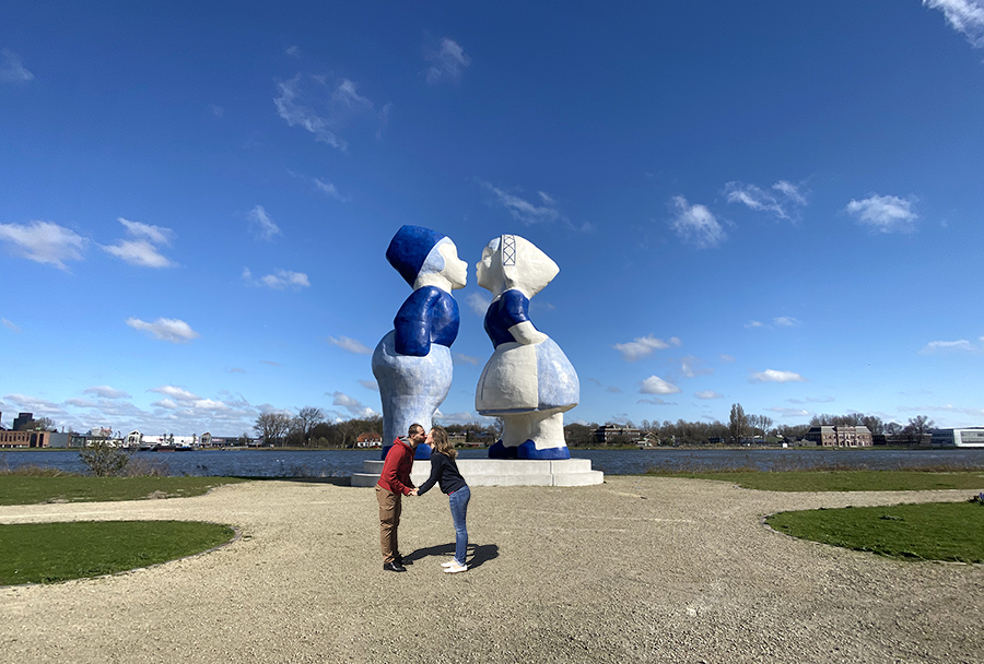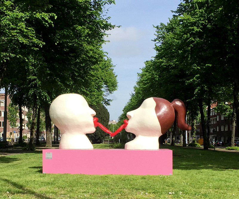 Kissing Couple XXXL naast oa de Toren van Pisa, The White House, The Palm Fountain Dubai en Sydney Opera House